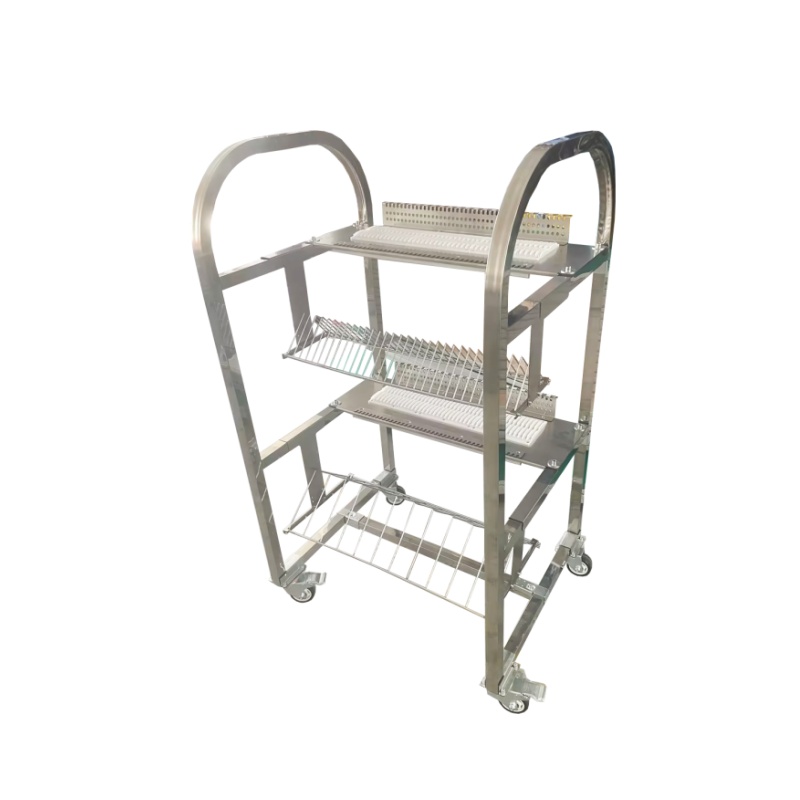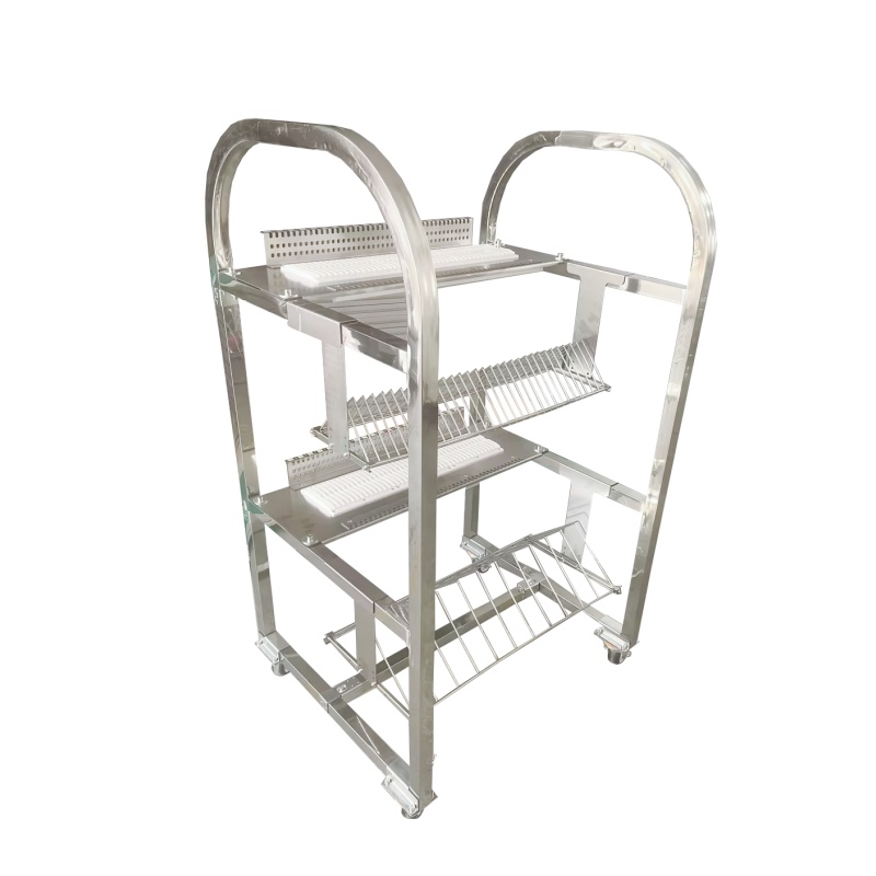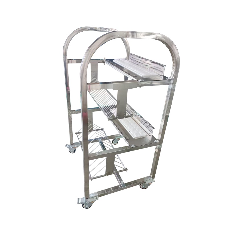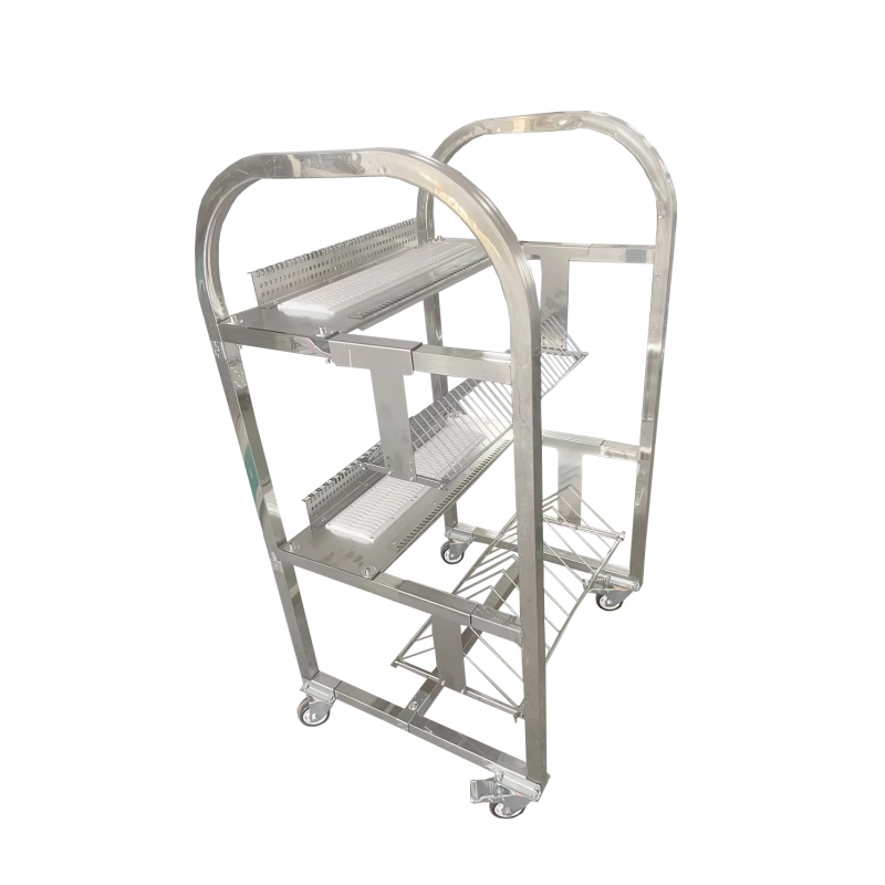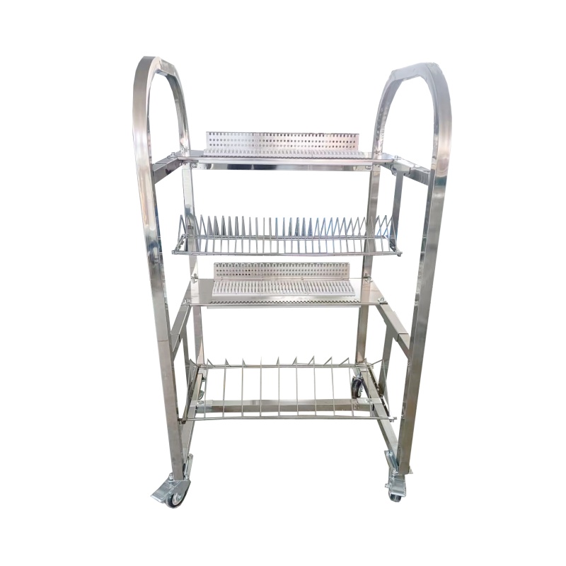 琦琦自动化源头工厂直供JUKI贴片机飞达车,采用加厚不锈钢材质,配备带编号精密放置槽与分层网篮,卡位稳固、存取便捷,支持按需定制槽位与尺寸,高效适配SMT产线飞达管理与周转。